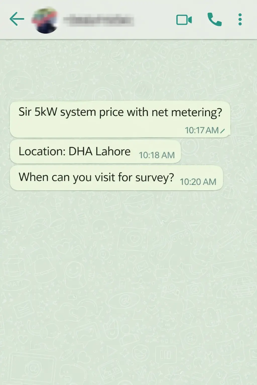 Real homeowner asking for 5kW net metering system and site survey. Pre-qualified, location confirmed, high buying intent.