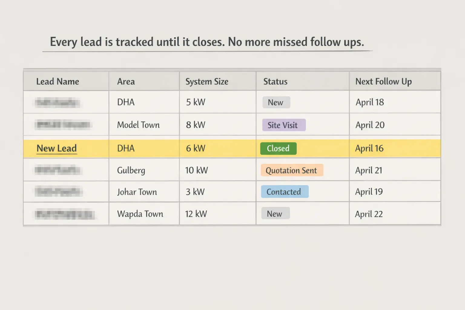 Structured tracking sheet that ensures every quote, survey, and follow-up is recorded and monitored for higher close rates.