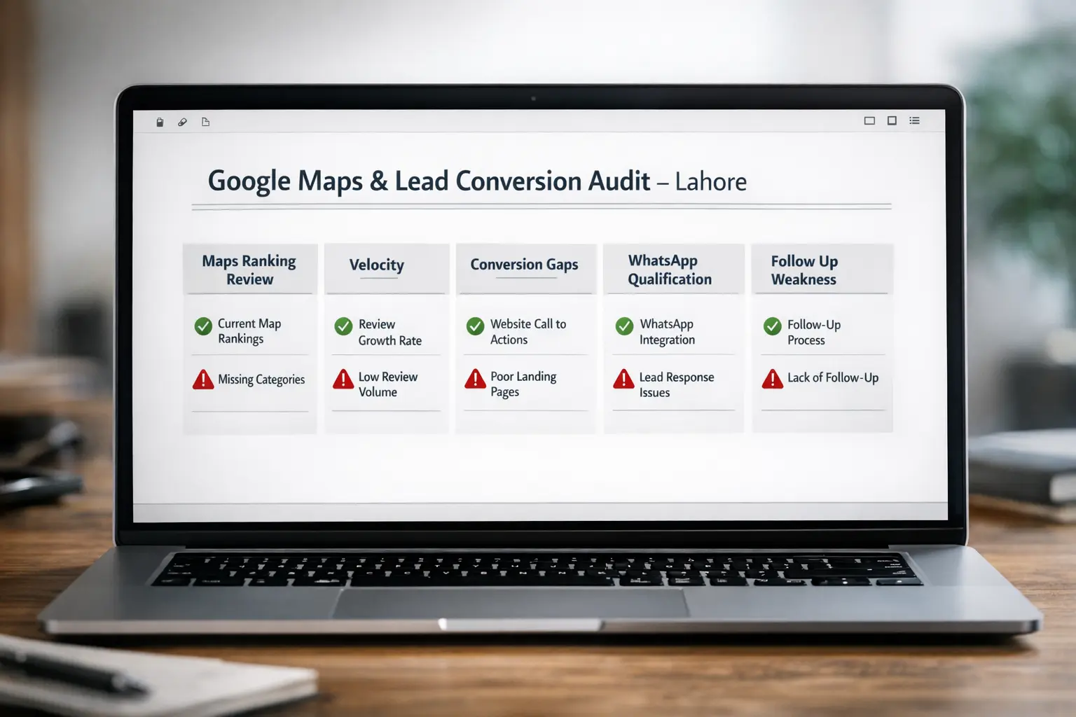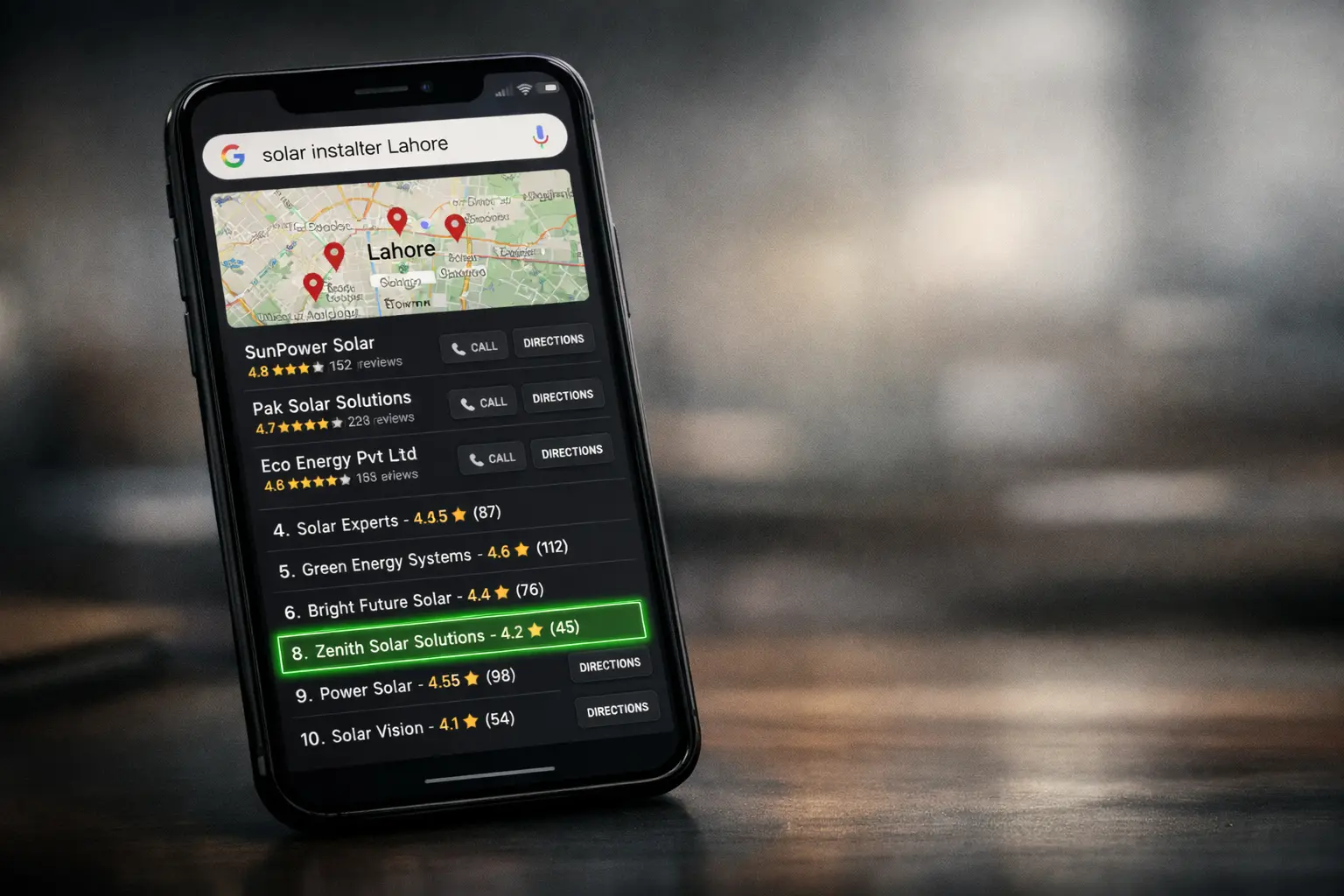 If your solar business is ranked between #6–#20 on Google Maps in Lahore and receiving inconsistent inquiries, request a short audit.