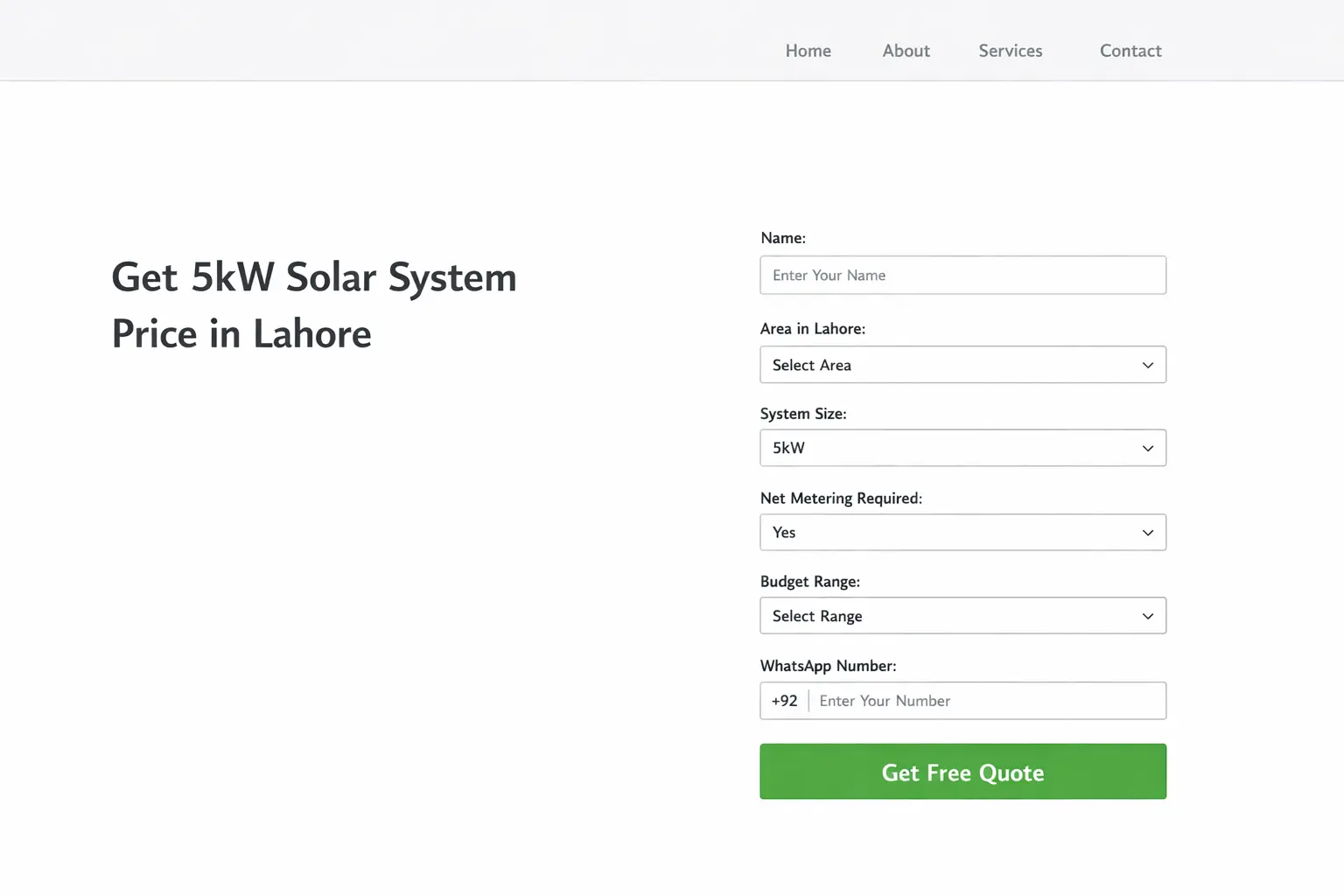 Conversion-focused pages targeting high-intent searches like 5kW system, hybrid solar, and net metering in Lahore.